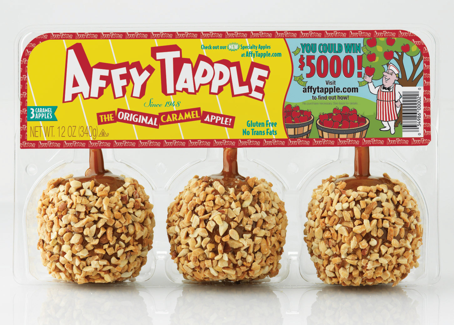 Through the summer and fall of 2016, Affy Tapple distributed hundreds of thousands of caramel apple 3-packs featuring the Sweepstakes label to grocery stores.