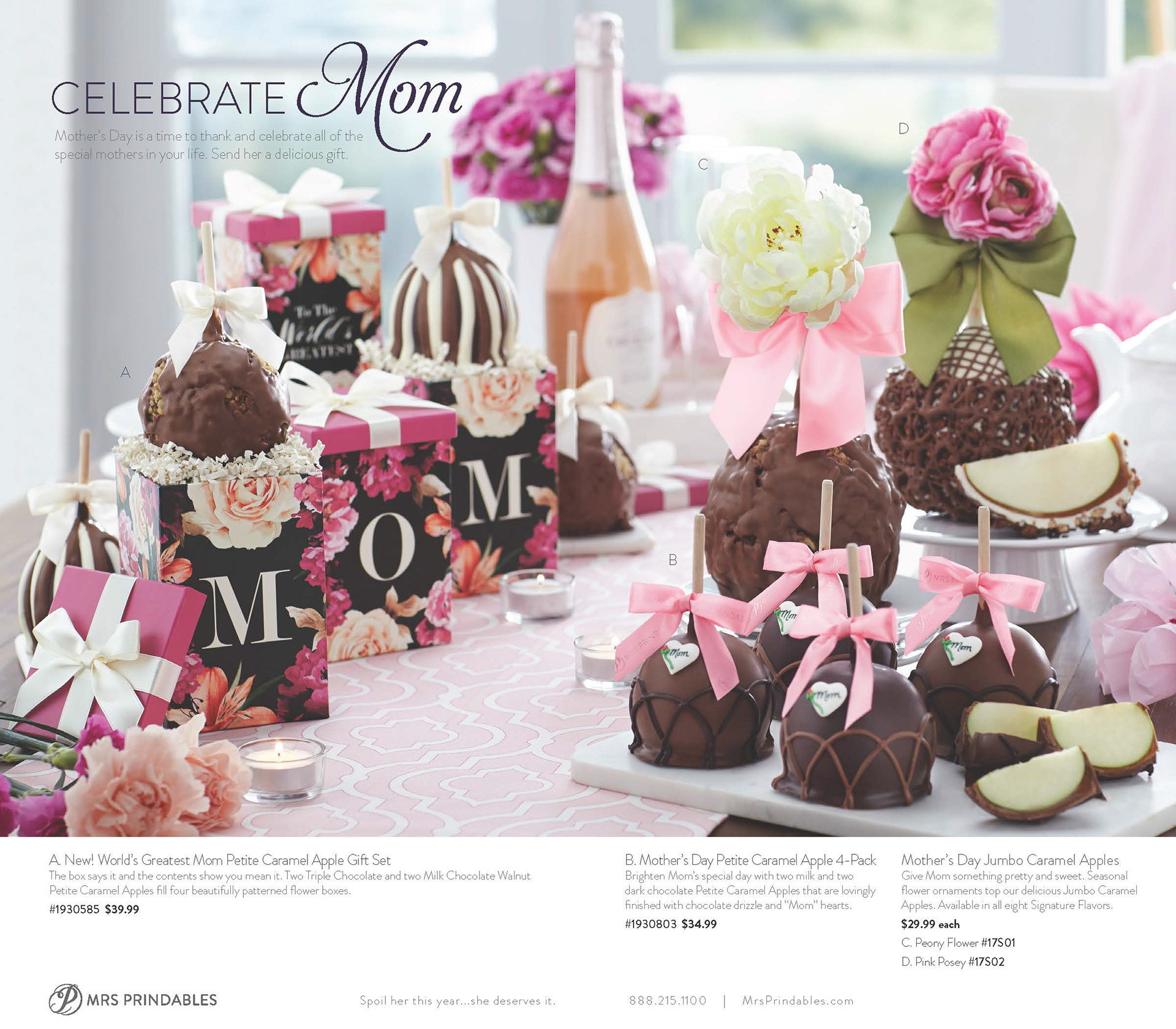 Mother's Day 2017 marketing catalog for Mrs Prindables Gourmet Caramel Apples. I handled all layout design, and worked with our photo studio to create the spreads envisioned.